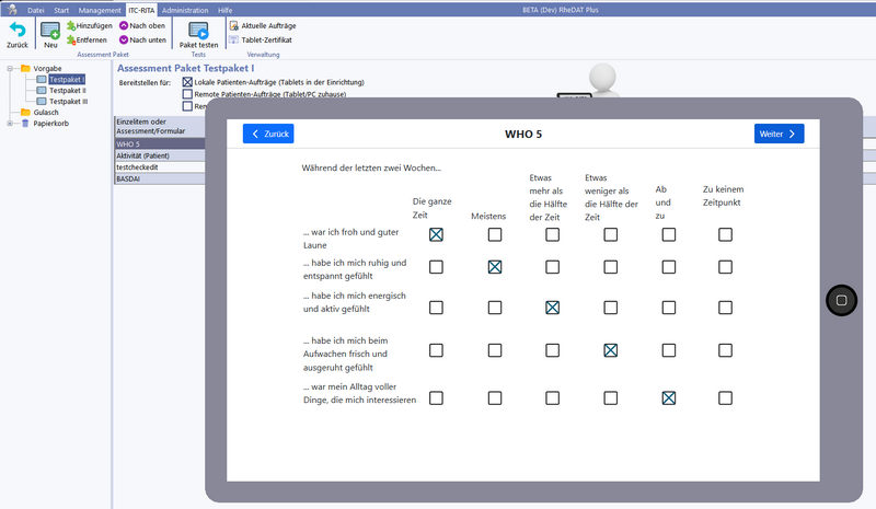 Statt schicker Hochglanzpräsentationen, die viel versprechen (und wovon nicht immer alles gehalten wird), laden wir Sie ein, sich selbst zu überzeugen. Testen Sie unsere Systeme in der nur in der Patientenzahl eingeschränkten FREE-Version kostenlos, unverbindlich und beliebig lange. Machen Sie sich Ihr eigenes Bild. Alle Systeme können problemlos von Laien z.B. auf einem Notebook installiert werden. Downloads finden Sie in unserem Serviceportal.