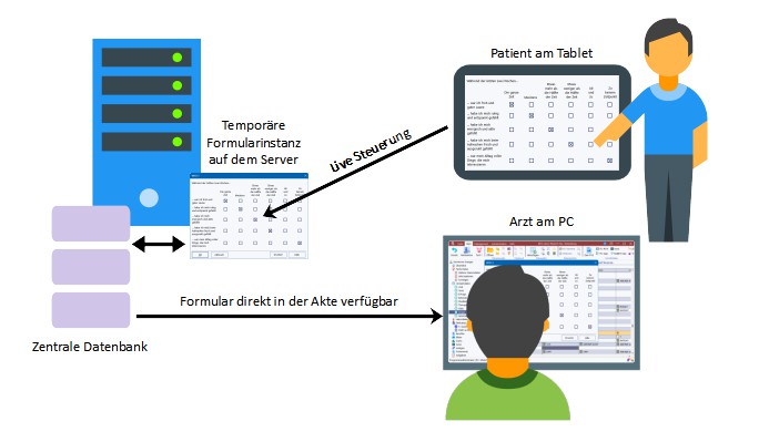 Im Gegensatz zu herkömmlichen Systemen verbleibt bei RITA der gesamte Eingabeprozess vollständig in Ihrem EMIL-System. Das Remote-Endgerät dient lediglich als Steuerung der Eingabe.